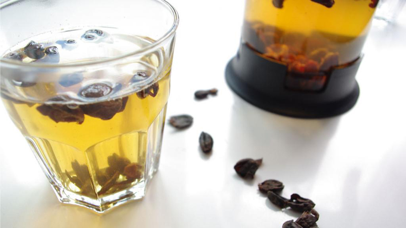 Odkąd opracowano metodę suszenia skórek kawowych wiśni, można z tak uzyskanego suszu otrzymać napar, który smakiem i zapachem przypomina orzeźwiającą i lekką owocową herbatę.