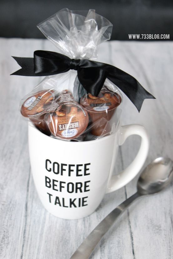 2) Prezent budżetowy. Wystarczą: kubek, kapsułki do ekspresu, celofan i kokardka. Oczywiście dla posiadaczy ekspresów kapsułkowych. Wszystkie elementy powinny kosztować mniej więcej 30-50zł, w zależności od ceny kubka.