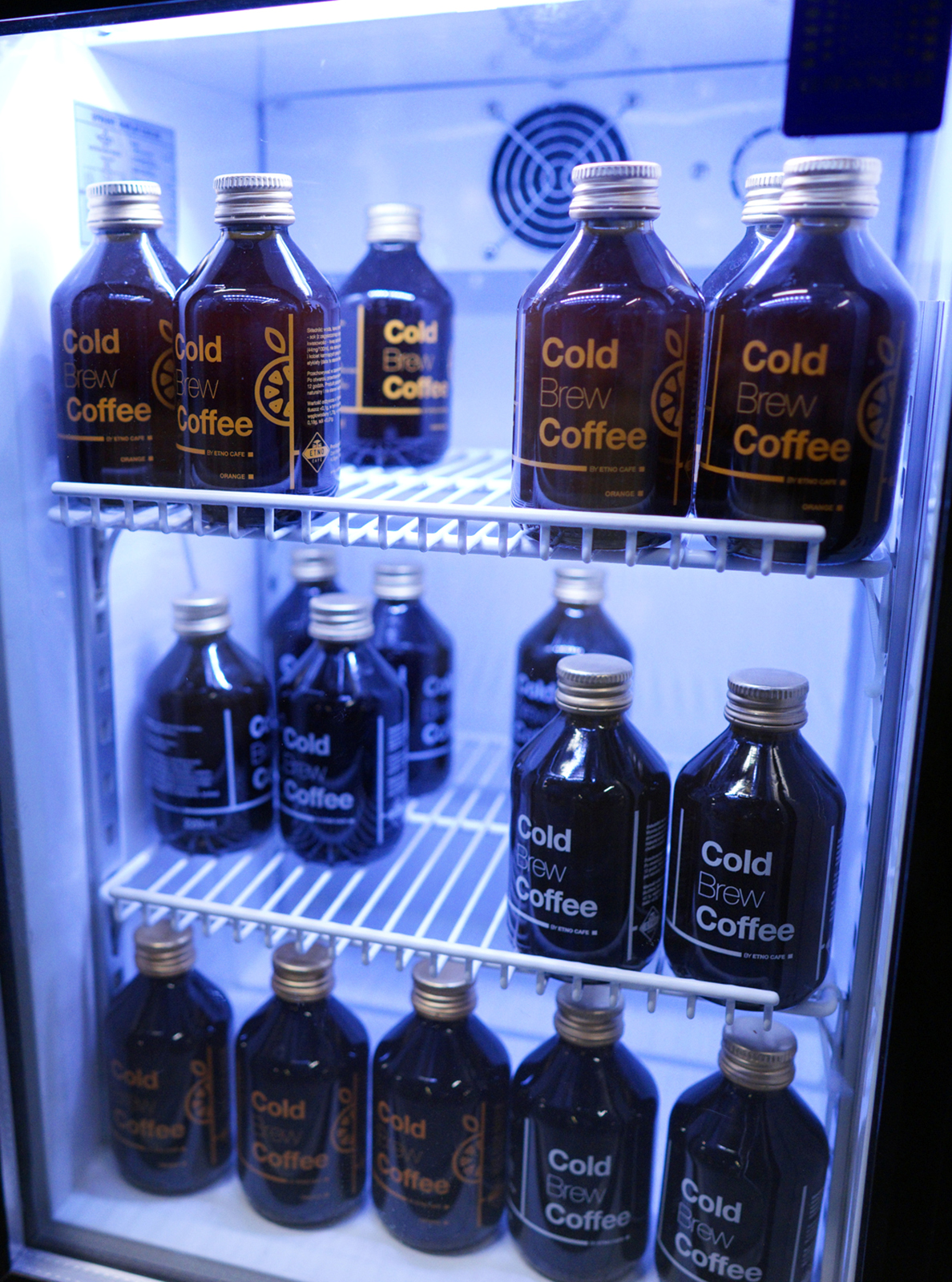 | Niebieska lodówka z Cold brew w środku przyciągała wzrok |