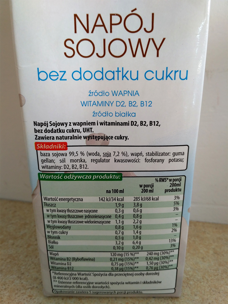 Mleko sojowe jest dość nowe w diecie Polaków. Ponieważ soja nie ma bezpośredniego odpowiednika w naszej rodzimej kuchni, jest to smak, do którego dopiero się przyzwyczajamy. Rośnie dostępność i różnorodność mleka sojowego. Jeszcze kilka lat temu można było je nabyć tylko w specjalnych sklepach czy działach z „żywnością świata”. Teraz możesz je znaleźć w każdym supermarkecie, a nawet mniejszych, osiedlowych sklepikach spożywczych. Choć jego cena jest średnio dwukrotnie (bywa, że więcej) wyższa od ceny mleka krowiego, coraz to nowe jego wydania (o różnych smakach) na pewno zachęcają do zakupu i eksperymentowania. Mleko sojowe sprawdzi się nie tylko jako zastępnik mleka krowiego, ale po prostu jako ciekawy dodatek. Polecam wszystkim poszukującym nowych smaków kawy i nie tylko.