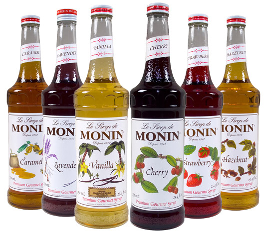 Jeśli szaleć to szaleć. Kawa może nas zaskoczyć wyjątkowym smakiem nie tylko kawy. Odrobina syropu sprawi, że poczujemy smak karmelu, orzecha czy wiśni. Popularne syropy, używane również przez baristów, produkuje firma Monin.