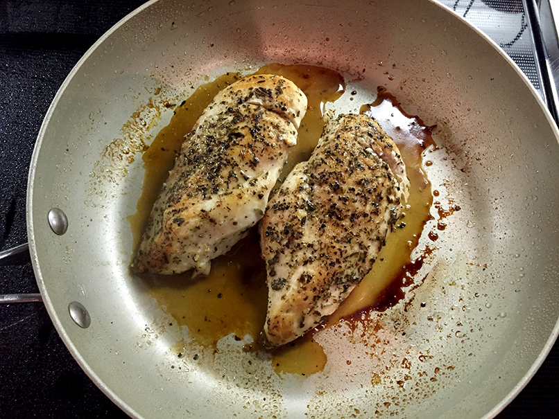 Kurczaka smażymy; w tym wypadku będzie to naprawdę krótki czas smażenia, ponieważ pierś jest miekkim mięsem i z łatwością poddaje się wszelkim obróbkom termicznym, a poza tym mamy przecież do usmażenia dość cienkie kawałki :)