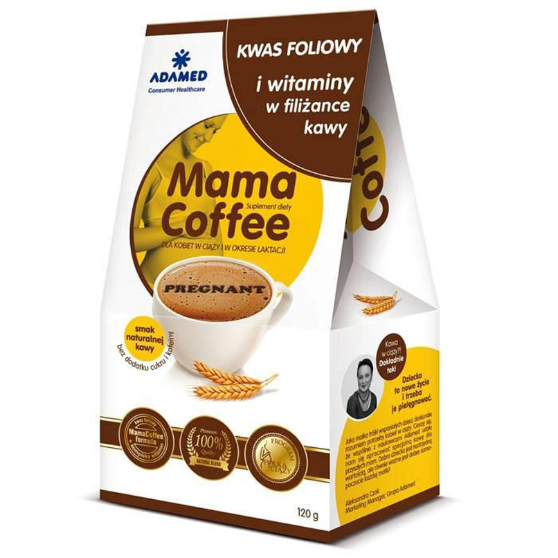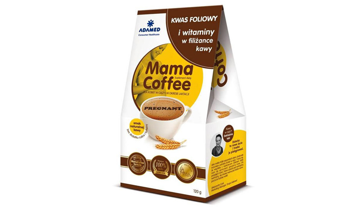 Całe szczęście producenci dbają o troskliwe ciężarne (lub raczej upatrują w nich źródło potencjalnego zyskuJ) i co jakiś czas wypuszczają na rynek różne spożywcze ciekawostki. W jednej z drogerii znalazłam kawę o wiele mówiącej nazwie Mama Coffee.