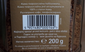 Ostatnią informacją pozostawiającą nas z jeszcze większymi wątpliwościami jest termin przydatności do spożycia, który określony został na maj 2018 r. Brak informacji kiedy kawa została wyprodukowana. Teoretycznie, kawa rozpuszczalna została stworzona właśnie po to, aby móc ją długo przechowywać. Ale z drugiej strony, to wciąż produkt spożywczy, mogący ulec zepsuciu, tracący swoje walory spożywcze wraz z upływem czasu. Można pokusić się o stwierdzenie, że kawa to specyficzny produkt spożywczy, bo zawiera olbrzymią ilość związków lotnych, określających jej wyjątkowy smak i aromat. Równie wyjątkowy, bo nagły jest proces utraty tych cennych substancji. Podsumowując powyższe rozważania, może należałoby zadać sobie pytanie: czy to aby na pewno jest jeszcze kawa?