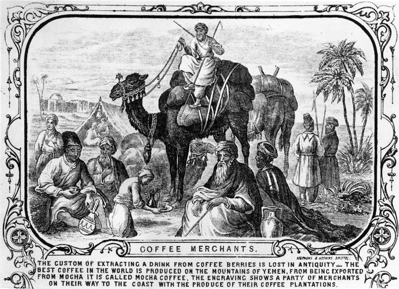 Uznaje się, że praojczyzną krzewu kawowca jest prowincja Kaffa w południowej Etiopii a jego owoce żuli tamtejsi nomadowie. Sam pomysł wytwarzania pobudzającego napoju z ziaren kawy też pochodzi z Afryki. Nie później niż w XV wieku, kawa przypadła do gustu Arabom. Już wtedy zwłaszcza Jemen opierał się na jej uprawie i handlu.