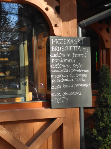 Mój zestaw kawa i ciasto kosztował poniżej 20 zł. W menu znajdziemy także przekąski takie jak bruschetta z pesto, kremowe zupy, tosty, sałatki, owocowe desery, musy i smoothie. Specjalnością kawiarni są różne rodzaje lodów, np. z gorącymi malinami. W kwestii napojów, oprócz standardowych kaw jak latte czy cappuccino, można napić się kawy z alkoholem lub syropem smakowym. Dla amatorów czekolady atrakcyjną opcją może być czekolada na gorąco. Co ważne w górach, w kawiarni „Pokusa” można płacić kartą. Jest też dostęp do bezprzewodowego Internetu.