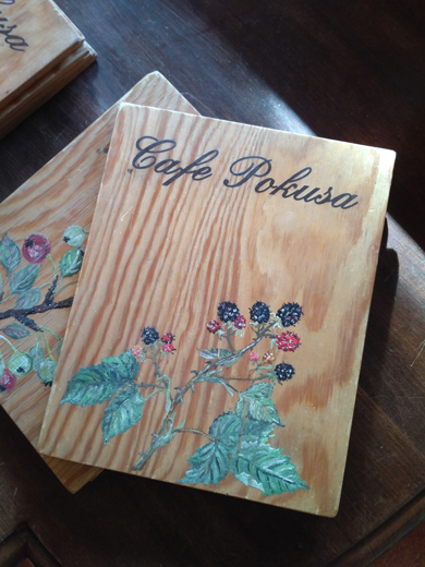 | Fot.6. Pomysłowe, drewniane menu kawiarni Pokusa | Fot.7. Pyszna kawa | |