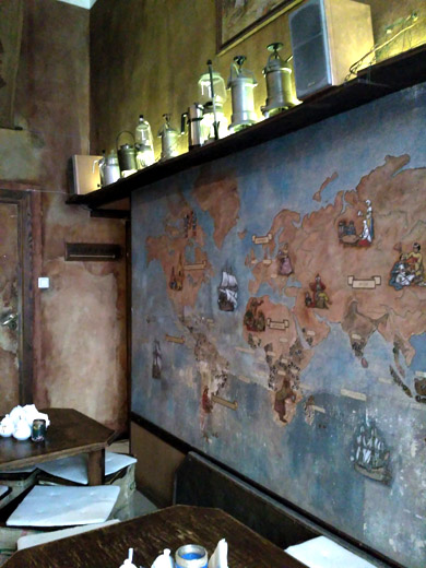 | Fot 6. Czarna, mocna, ciemno palona kawa z Meksyku | Fot. 7. Przejście do sklepiku znajduje się zaraz obok kawowej mapy świata | |||