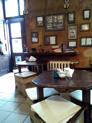 Kawiarnia jest malutka, jest tam dosłownie kilka stolików, w tym bardzo przytulne miejsce z poduszkami na szerokim parapecie. Zwykle jest cicho, a przez okno możemy obserwować niespieszną ulicę św. Tomasza, przecznicę od bardzo gwarnej i turystycznej Floriańskiej.