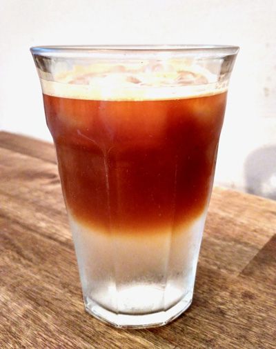 Miedziane espresso zawieszone nad falą przezroczystego, gazowanego toniku to idealny napój na gorący letni dzień.