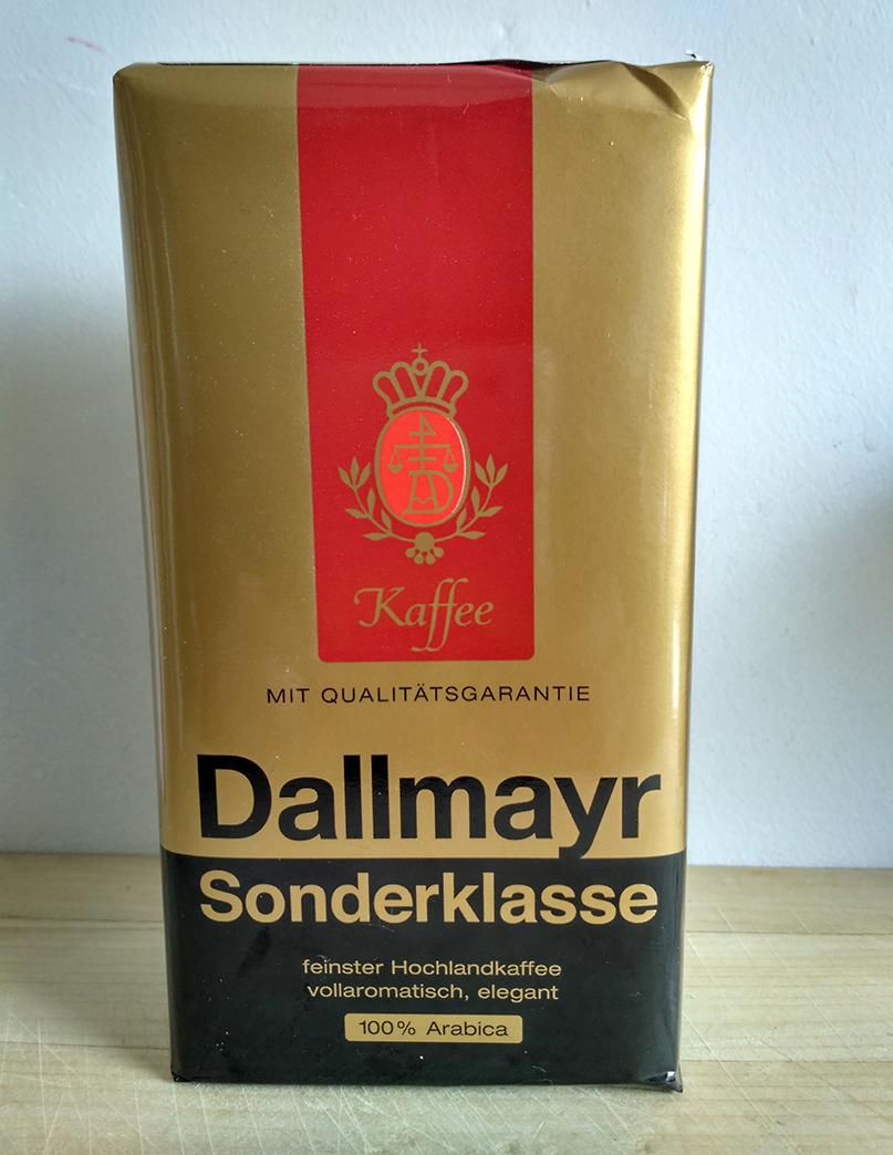 Firmy Dallmayr nie trzeba nikomu przedstawiać – jest to niemiecki producent kawy z tradycjami i wieloletnią obecnością na rynku kawy. Kawa Sonderklasse, czyli klasy specjalnej to jeden z flagowych produktów Dallmayr. Według informacji na opakowaniu, jest to kompozycja najlepszych wyżynnych odmian Arabiki. Kawę tę ma cechować wyjątkowo wysoka jakość, bogaty smak i doskonały aromat. Ma uniwersalny charakter – można zaparzyć ją w ekspresie przelewowym, w aeropressie i ekspresie ciśnieniowym. Dallmayr Sonderklasse jest w połowie skali intensywności pod kątem stopnia palenia, intensywności smaku i kwasowości.