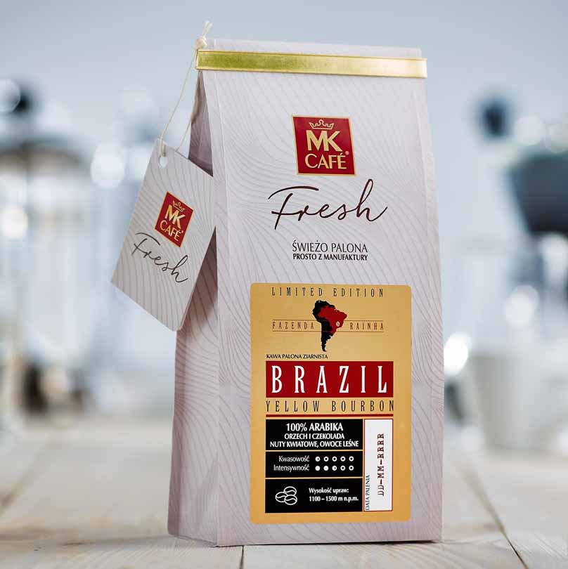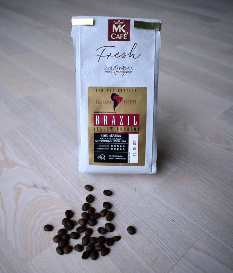 Ja nie jestem zwolennikiem kaw brazylijskich, gdyż większość z nich opiera się o odmiany Catui oraz Mundo Nova dające zbalansowany profil smakowy, o małej kwasowości i lekko czekoladowym smaku, jak dla mnie kawy te sa nijakie. Brazylijska odmiana Yellow Bourbon jednak zdecydowanie różni się od wyżej wymienionych odmian. Jest duzo bardziej wyrazistsza z podkreśloną nutą kwasowości i lekkim posmakiem owocowym.Z kawami brazylijskimi należy uważać, gdyż te pozyskiwane z wielkich plantacji opierają się o odmiany Itacu oraz Castilliana, które są arabicorobustami, bardzo podłymi w smaku.Ja osobiście preferuje kawy z bardziej rozbudowanym profilem sensorycznych, a więc wszystkie kawy etiopskie, Kenie AA ale opartą tylko o odmianę SL28 i SL32 bez domieszki R11, kapitalna kawę z Konga Kivu Grade 4 opartą o słynną odmianę arabiki Blue Mountain. O te samą odmianę arabiki oparta jest kawa z Kemerunu Santa oraz Papua Nova Gwinea Singrii AA.Doskonałe są też kawy z Kostaryki-słynne Tarrazu SHB. Zresztą kawy z Ameryki Środkowej są dużo ciekawsze sensorycznie niż te brazylijskie. Polecam też sklepy internetowe Bogactwo Kaw, Coffedesk. Kawy MK zwłaszcza te sprzedawane masowo są niestety kiepsko palone.Wszystkie na kolor ciemny z tendencją do przepalania.Kiedyś zachwycony byłem ich ziarnistą kawą z Kolumbii,mocna przypominającą znakomitą Supremo Medellin. Obecnie ta kawa jest mało kolumbijska.
