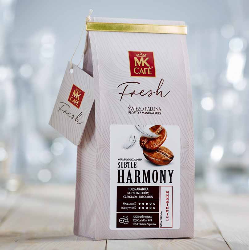 Subtle harmony jest 100% arabiką złożoną z 3 rodzajów ziaren: lwia część to Brazil Mogiana (70%), sporo mniejszy składnik stanowi Costa Rica SHB (20%), najmniej zaś w mieszance jest ziaren Colombia Supremo (10%). Od kawy tej możemy oczekiwać kwasowości na poziomie średnim i przeciętnej intensywności. Nosy zaawansowanych kawoszy być może odkryją aromaty orzechów, czekolady i brzoskwiń.