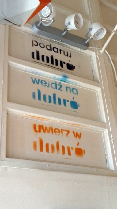 A teraz najważniejsze! Ponieważ kawiarnia dba o swoje dobre imię, czyli Dobro&Dobro, każdy może napić się kawy za darmo, jeśli tylko jest aktualnie „zawieszona” (czyli kupiona wcześniej przez innego kawosza i nie wypita). Można także postąpić odwrotnie – przyjść na kawę, zapłacić za dwie, ale wypić tylko jedną a drugą pozostawić dla kogoś, kogo nie stać na nią w danym momencie (czasem głód kofeinowy bierze górę). Można również zostawić kawę dla konkretnej osoby a na kubku przekazać ważną wiadomość lub po prostu pozdrowić ją. W końcu „podaruj dobro, wejdź na dobro, uwierz w dobro” to nie puste slogany!