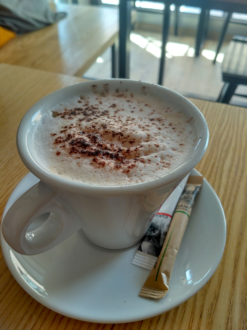 Kawiarnia „Degustacja” to stosunkowo nowy punkt na mapie Bełchatowa. Mieści się przy deptaku w centrum miasta, przy ul. Narutowicza. „Degustacja” to pracownia cukiernicza rodziny Zakrzewskich. Jako zakład ciastkarski działają od 30 lat – firma została założona w 1989 roku. Na początku zajmowali się wypiekiem ciastek i ciast, ale obecnie posiadają również kawiarnię, którą odwiedzam ilekroć jestem w Bełchatowie. Opisując tę kawiarnię w kilku słowach – to miła mała cukiernia z kilkoma stolikami i całkiem pokaźnym kącikiem zabaw dla dzieci. We wnętrzu znajdziemy dużo drewna – proste stoliki o nowoczesnym designie, sporo poduszek i jasnych kolorów. Na ścianach wiszą zdjęcia, a w całym wnętrzu jest stosunkowo dużo światła. Wystrój jest neutralny, słoneczny i utrzymany w ciepłych kolorach. Przy kontuarze możemy nacieszyć wzrok całą gamą ciast, tortów, ciasteczek i słodkich bułek. A teraz przejdźmy do meritum – jak smakują te wszystkie pyszności i co ważniejsze, jaką mają kawę?