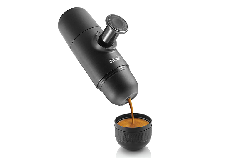 Oto najdroższe urządzenie w naszym zestawieniu (ok. 250 zł) o dość skomplikowanej nazwie: WACAO Minipresso Portable EspressoMaker Cooking System. Ten niewielki gadżet działa jak ekspres ciśnieniowy. Posiada specjalną skalę, z wykorzystaniem której można przygotować kawę o określonym natężeniu (począwszy od lekkiej kawy do mleka i cukru po mocne espresso, mało tego nawet podwójne espresso!).