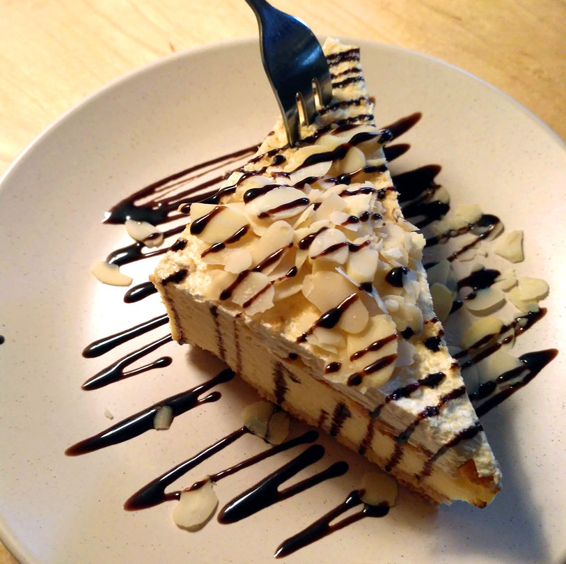 Fot. 3. Sernik z czekoladową polewą i płatkami migdałów