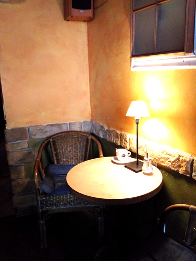 Wchodząc do „Siesty” urzeka kameralna atmosfera. Wystrój nawiązuje do włoskiego podwórka – jest dużo ciemnego drewna, ciepłe pomarańczowe ściany i zieleń. Dwa pomieszczenia kawiarni wypełniają małe stoliki, dość gęsto ustawione, idealne dla grupy do 4, maksymalnie 5 osób. Intymny klimat tworzy światło – na większości stołów znajdziemy lampki, których delikatne, przyciemnione oświetlenie ociepla całe wnętrze. Efekt odpoczynku, prawdziwej siesty, dają także wiklinowe fotele, na których można się wygodnie rozsiąść. Muzyka jest różna, ale w większości można tu usłyszeć piosenki stylem przypominające lata ‘30 i ‘40-te, radosne, spokojne i nastrajające optymistycznie. Wszystko to powoduje, że „Siesta” to miejsce raczej do relaksu, spokojnego delektowania się deserem czy kawą w gronie znajomych. Choć jest WiFi i można tu usiąść z komputerem, uwierzcie mi, błogi nastrój tego miejsca intensywnej pracy raczej nie sprzyja :)